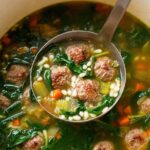 Italian Wedding Soup is a comforting classic featuring tender homemade meatballs simmered with fresh vegetables, pasta, and spinach in a savory chicken broth. This hearty yet light soup is perfect for a family meal or special occasion.