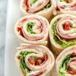 I prefer to enjoy Italian Salami Pepperoni Pinwheels Recipe cold or at room temperature since the fresh lettuce adds great crunch. But if you want to warm them up, I recommend a quick 10-15 second zap in the microwave just to take the chill off—don’t overheat or the lettuce and tortillas will get soggy.