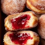 These homemade jelly-filled donuts are irresistibly soft, airy, and perfectly sweet. Made with a tangzhong starter for extra tenderness, they're fried to golden perfection, rolled in sugar, and filled with raspberry jelly for a classic breakfast treat that's sure to impress.