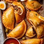 This Beef Empanadas recipe features a flavorful blend of minced beef and chorizo with vibrant spices, encased in a homemade shortcrust pastry. These golden, crispy empanadas are perfect as appetizers or main dishes, reflecting traditional South American and Brazilian culinary influences. With a flaky dough and a juicy, well-seasoned filling, they make an impressive and delicious treat for family and guests.