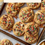 Kitchen Sink Cookies are a delightful mix of sweet and salty flavors featuring a blend of chocolate chips, toffee bits, crushed potato chips, pretzels, and festive holiday jimmies baked into thick, chewy cookies. Perfect for holiday gatherings or anytime you crave a fun, texture-packed treat.