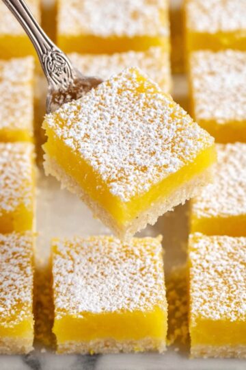 To freeze, place fully cooled and sliced lemon bars in a single layer on a parchment-lined baking sheet and freeze until solid. Then transfer them to a freezer-safe container or bag. Freeze for up to 2 months. Thaw in the refrigerator overnight before serving.