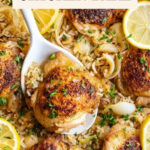 This Lemon Chicken Rice Bake is a flavorful one-pan meal featuring juicy chicken thighs marinated in a zesty lemon and white wine mixture, cooked atop aromatic rice infused with fresh lemon zest and broth. It's a comforting, easy-to-make dinner perfect for any night of the week.
