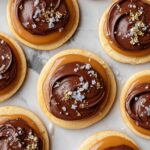 - Add chocolate layer: Spoon melted chocolate over caramel layer on each cookie. Immediately top with flaky sea salt and edible gold leaf if desired. Allow cookies to cool completely so caramel and chocolate set before serving.