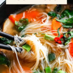 Thin rice noodles (like vermicelli) are classic because they cook quickly and soak up the broth beautifully without overpowering the soup. However, you can use udon, soba, or even ramen noodles—just cook them separately and add before serving to avoid overcooking.