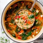 - Cook Noodles and Add Vegetables: Add rice noodles and chopped red bell pepper to the pot. Simmer for 2 minutes, then turn off the heat. Add baby bok choy, shredded chicken, and the miso mixture to the soup. Cover the pot and let it sit just until the noodles are al dente and the bok choy is wilted, about 1-2 minutes.