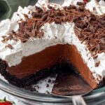 Indulge in this rich and decadent Mississippi Mud Pie featuring a chocolate cookie crust, fudgy brownie layer, smooth chocolate pudding, and fluffy whipped cream topping. Perfect for chocolate lovers, this layered dessert combines textures and flavors for an unforgettable treat.