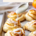 Bake your rolls in a 400°F oven for about 8-10 minutes until they’re lightly golden on top. While they’re still warm, whip up the orange glaze—just powdered sugar, zest, and a few tablespoons of juice—and drizzle it generously over the rolls. Let it set for about half an hour, and then dive in!