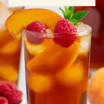 A refreshing Peach Iced Tea recipe featuring a homemade peach syrup made from fresh or frozen peaches, sweetened with sugar and honey, perfect for a cool and fruity beverage.