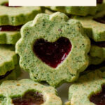 Delicious Pistachio Linzer Cookies featuring a tender pistachio-infused dough sandwiched with sweet raspberry jam. These charming cookies are lightly dusted with powdered sugar and perfect for festive occasions or a delightful treat.