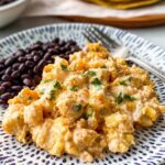 - Incorporate queso and milk: When the rice is ready, stir in the white queso dip and milk. Fluff the mixture together gently with a fork until combined and creamy. Serve warm for a comforting meal.