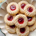 These Raspberry Almond Thumbprint Cookies are buttery shortbread treats filled with luscious raspberry jam and topped with a smooth, sweet icing. Perfectly tender with a delicate almond aroma, they make a delightful snack or dessert for any occasion.