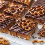 - Top with Chocolate Drizzle: Drizzle the remaining melted chocolate over the caramel and pretzel layer for a decorative finish.