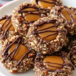 Delight in these Salted Caramel Turtle Thumbprint Cookies, featuring a rich cocoa-infused dough rolled in pecans, filled with gooey caramel, and drizzled with smooth chocolate. Perfectly balanced with a touch of sea salt, these cookies offer a delicious blend of sweet, salty, and nutty flavors.