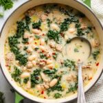 A hearty and flavorful Sausage and White Bean Soup featuring savory sausage, tender cannellini beans, kale, and a creamy broth enriched with Parmesan cheese and a hint of lemon. This comforting soup is simple to prepare on the stovetop and perfect for a satisfying meal any time of year.