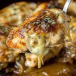 Skillet French Onion Chicken is a delicious one-pan recipe featuring tender chicken breasts topped with caramelized onions, savory herb gravy, and melted Swiss and provolone cheeses. This easy and flavorful dish combines the rich taste of French onion soup with juicy chicken, perfect for a comforting weeknight dinner.