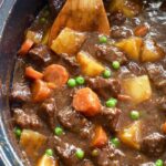 - Cook stew: Cook the mixture on high for 5 hours or on low for 8 hours until the beef is tender and vegetables are cooked through.