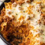 Once the pasta is tender, sprinkle shredded mozzarella all over the top and cover again to let the cheese melt evenly—about 20 minutes. When the cheese is bubbling and golden, it’s ready to serve. Make sure to scoop so you get all those rich layers on each plate!