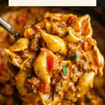 When the initial cooking is done, stir in the uncooked shell pasta, pushing it down so it’s immersed in the liquid. Turn the slow cooker to high and cook uncovered for 15-30 minutes, checking occasionally. Each slow cooker is a bit different, so keep an eye on the pasta’s tenderness—longer if you cooked low, shorter if you used high. The pasta absorbs all that tasty juice and thickens the sauce.