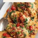 This Smothered BLT Chicken recipe features tender boneless skinless chicken breasts cooked to golden perfection and topped with a flavorful sauce made from crispy bacon, fresh spinach, juicy grape tomatoes, garlic, and parmesan cheese, all enriched with a creamy chicken broth base. It's a comforting and satisfying dish that's perfect for a hearty dinner.