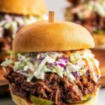 - Assemble Sandwich: On the bottom halves of the buns, layer the hot beef brisket, drizzle with barbecue sauce, and top it evenly with coleslaw.