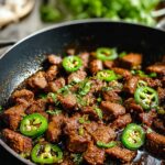 Spicy Cajun Steak Bites are perfectly seared bite-sized pieces of strip steak tossed in a bold, flavorful Cajun seasoning blend and finished in a buttery garlic jalapeño sauce. This quick and easy recipe offers a spicy, tender, and juicy steak snack or main dish with rich, smoky flavors that pack a punch.