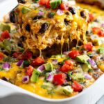 This Chicken Enchilada Casserole is a flavorful, layered Mexican-inspired dish featuring shredded chicken, black beans, green chiles, cheese, and a homemade enchilada sauce. It’s perfect for a comforting dinner, baked to cheesy perfection and served with fresh toppings like cilantro, avocado, and sour cream.