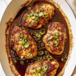 - Rest and Serve: Remove the chicken from the oven and let it rest for about 5 minutes to retain juices. Optionally, garnish with chopped green onions and parsley before serving. Serve with your favorite sides like rice, slaw, or roasted vegetables.
