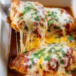 - Add Cheese and Broil: Remove the dish from the oven and sprinkle shredded cheese evenly over each chicken breast. Turn the oven’s broiler on high, place the chicken under the broiler for 1-2 minutes until the cheese is melted and bubbly.