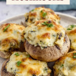 Delicious spinach dip stuffed mushrooms featuring a creamy combo of spinach, cream cheese, sour cream, and Parmesan, baked to golden perfection and topped with melted mozzarella. Perfect appetizer or snack that's easy to prep and bake.