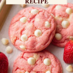 Delight in these soft and crumbly Strawberry Cake Mix Cookies, bursting with sweet strawberry flavor enhanced by white chocolate chips and a hint of lemon. Perfectly simple to prepare, these cookies bake quickly to a tender finish that's lightly set, not overly browned, making them a delicious treat for any occasion.