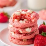 Delight in these soft and crumbly Strawberry Cake Mix Cookies, bursting with sweet strawberry flavor enhanced by white chocolate chips and a hint of lemon. Perfectly simple to prepare, these cookies bake quickly to a tender finish that's lightly set, not overly browned, making them a delicious treat for any occasion.