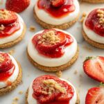 - Add Strawberry Topping: Spoon some strawberry pie filling onto the center of each frosted cookie. Optionally, sprinkle with additional graham cracker crumbs for texture and garnish.