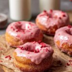 Delight in these fluffy, lightly fried Strawberry Glazed Donuts featuring a unique tangzhong dough enriched with freeze-dried strawberry powder. Perfect for breakfast, brunch, or dessert, these donuts are coated with a vibrant strawberry sugar and finished with a smooth strawberry glaze, accented by freeze-dried strawberry garnishes.