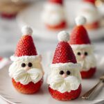 Delight in these festive Strawberry Santas with Cream Cheese Frosting, a fun and easy no-bake treat perfect for holiday gatherings. Sweet strawberries are transformed into adorable Santa figures with a creamy, vanilla-infused cream cheese frosting and detailed with mini chocolate chip eyes.