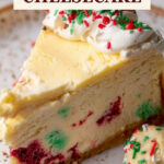 I love finishing this cheesecake with a handful of festive cookie dough balls and extra sprinkles on top for that cheerful pop. If I’m feeling fancy, a dollop of whipped cream or a dusting of edible glitter never hurts!