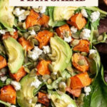 A vibrant and nutritious Sweet Potato Salad featuring roasted sweet potatoes, peppery arugula, creamy avocado, tangy feta, and crunchy toasted pepitas, all drizzled with a luscious tahini dressing. Perfect as a wholesome lunch or a light dinner.