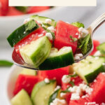 If you do have leftovers, store them in a sealed glass container in the fridge, but only for a night or two. The watermelon and cucumber release a lot of juice, so the texture won’t hold up very long after mixing.